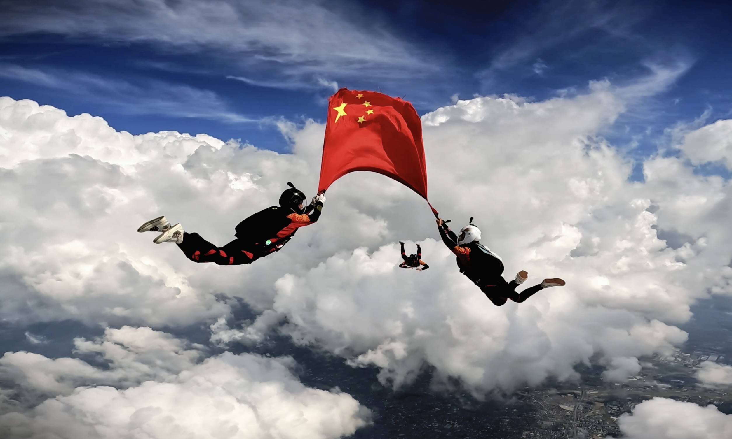 当直升机飞临东京上空,舱门打开的瞬间,强劲的气流扑面而来。四人毫不犹豫,依次纵身跃下,以每小时200公里的速度冲破云层,在自由落体中迅速调整姿态。他们默契配合,克服气流干扰,在东京上空展开那面长2.4米的五星红旗。红旗在蔚蓝的天空中迎风招展,与脚下东京的都市景观形成鲜明对比,构成一幅震撼人心的画面。